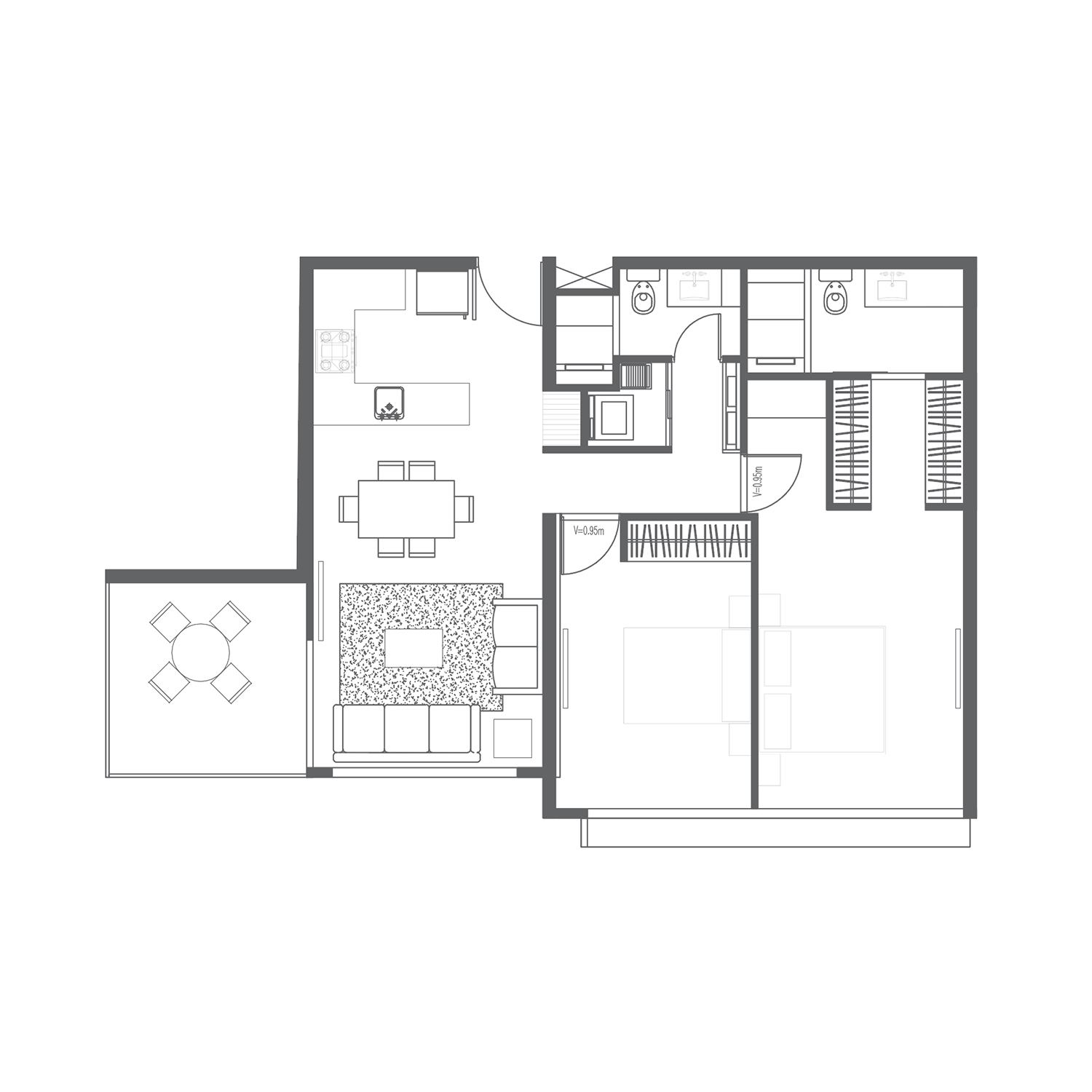 Los apartamentos de Avvia ofrecen un diseño moderno y elegante. Con grandes ventanales que permiten la entrada de luz natural. La cocina moderna de concepto abierto se integra con las áreas comunes, creando un ambiente funcional.